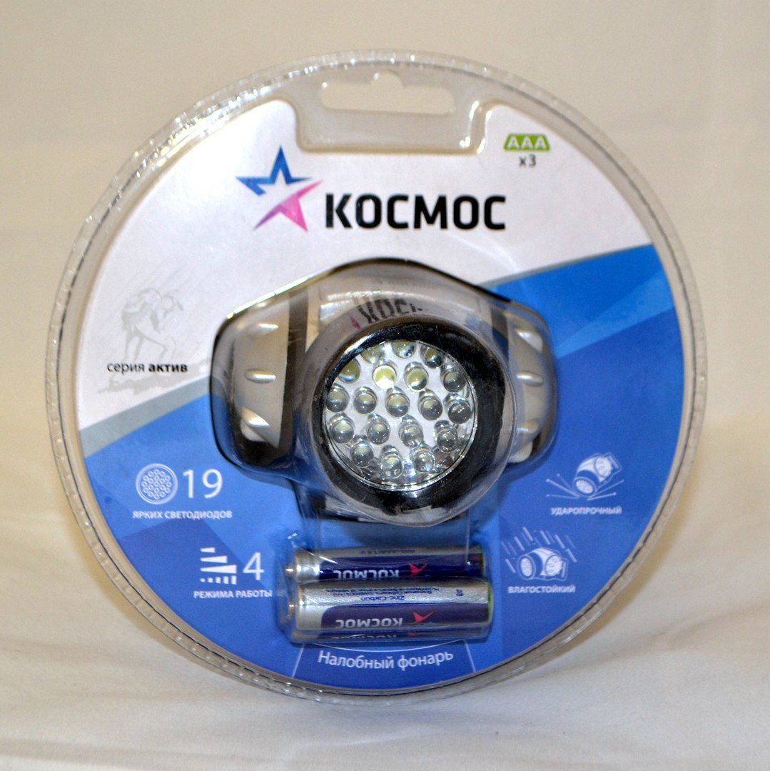 Фонарик на лобный на батарейках арт.-19L КОСМОС (Арт. RS28555)