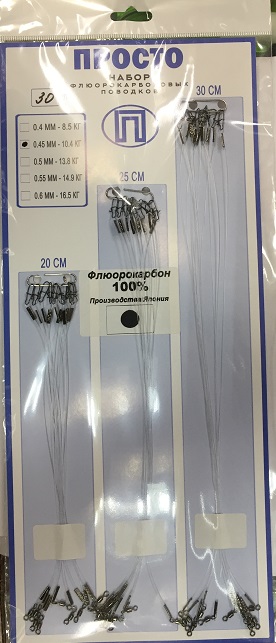 Набор флюорокарбоновых поводков 30 штук от 20 см до 30 см-0.45mm-10.4kg.GK