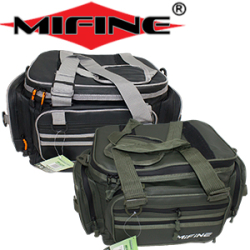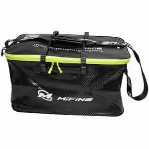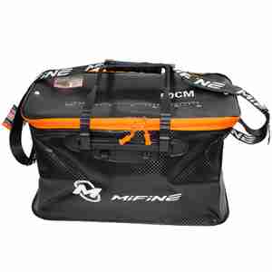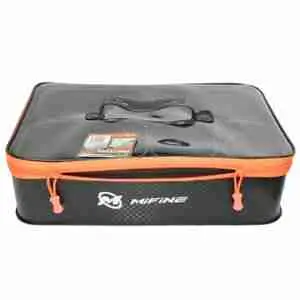 Водонепроницаемые сумки Mifine для хранения и переноски снастей. Крышка на молнии выполненного из твердого пластика, что позволяет использовать ее как стол. Кроме основного отделения внутри сумки находится пластиковый ящик для снастей. Ящик разделен на 2 половины, с каждой стороны можно установить два съемных разделителя и превратить его в ящик с 6-ю отделениями. По бокам сумки расположены 4 стакана для транспортировки или хранения удилищ.