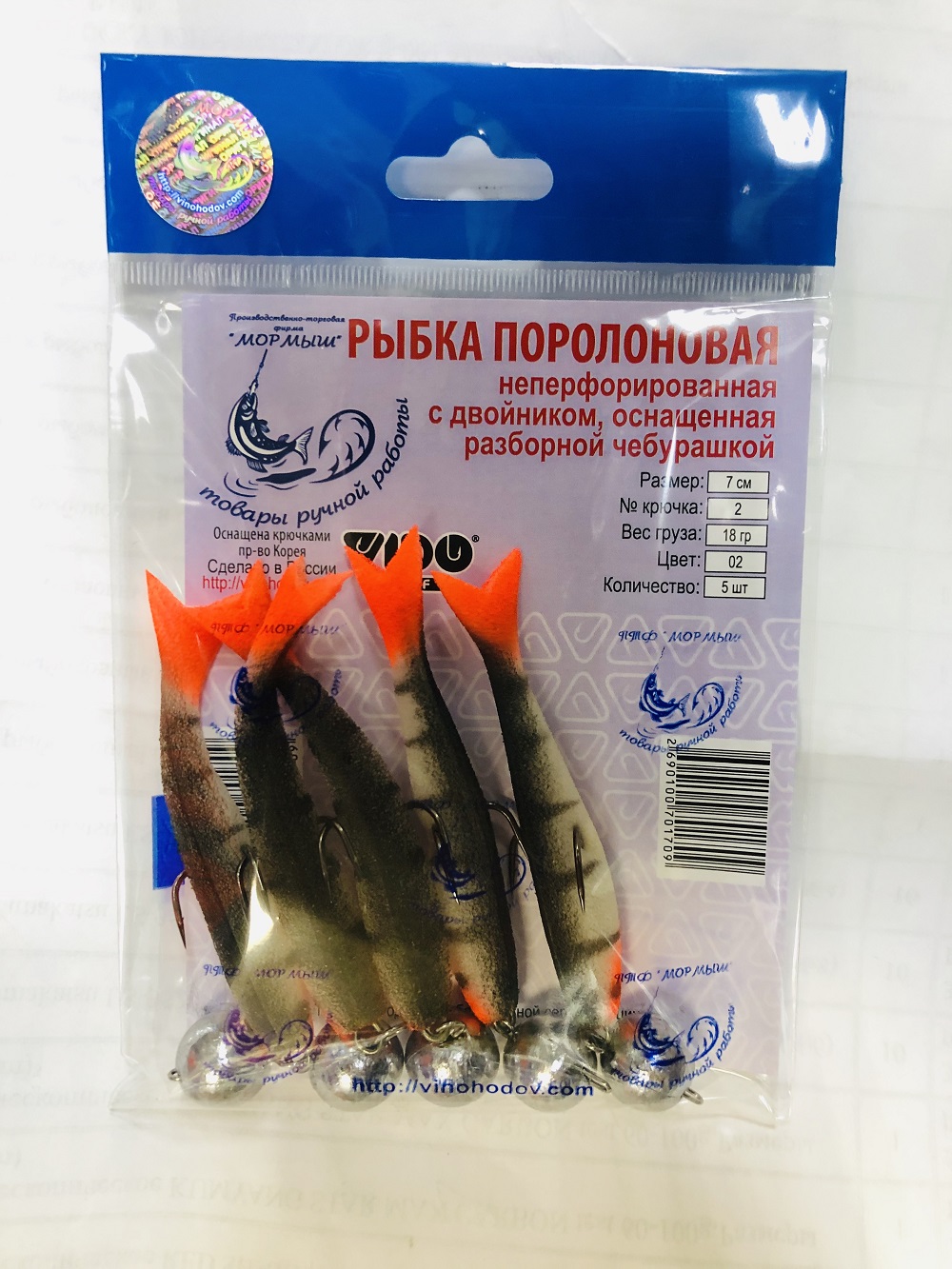 Рыбка поролоновая перфорированная оснащённая двойником с грузом SAIKYO 5 штук.LN