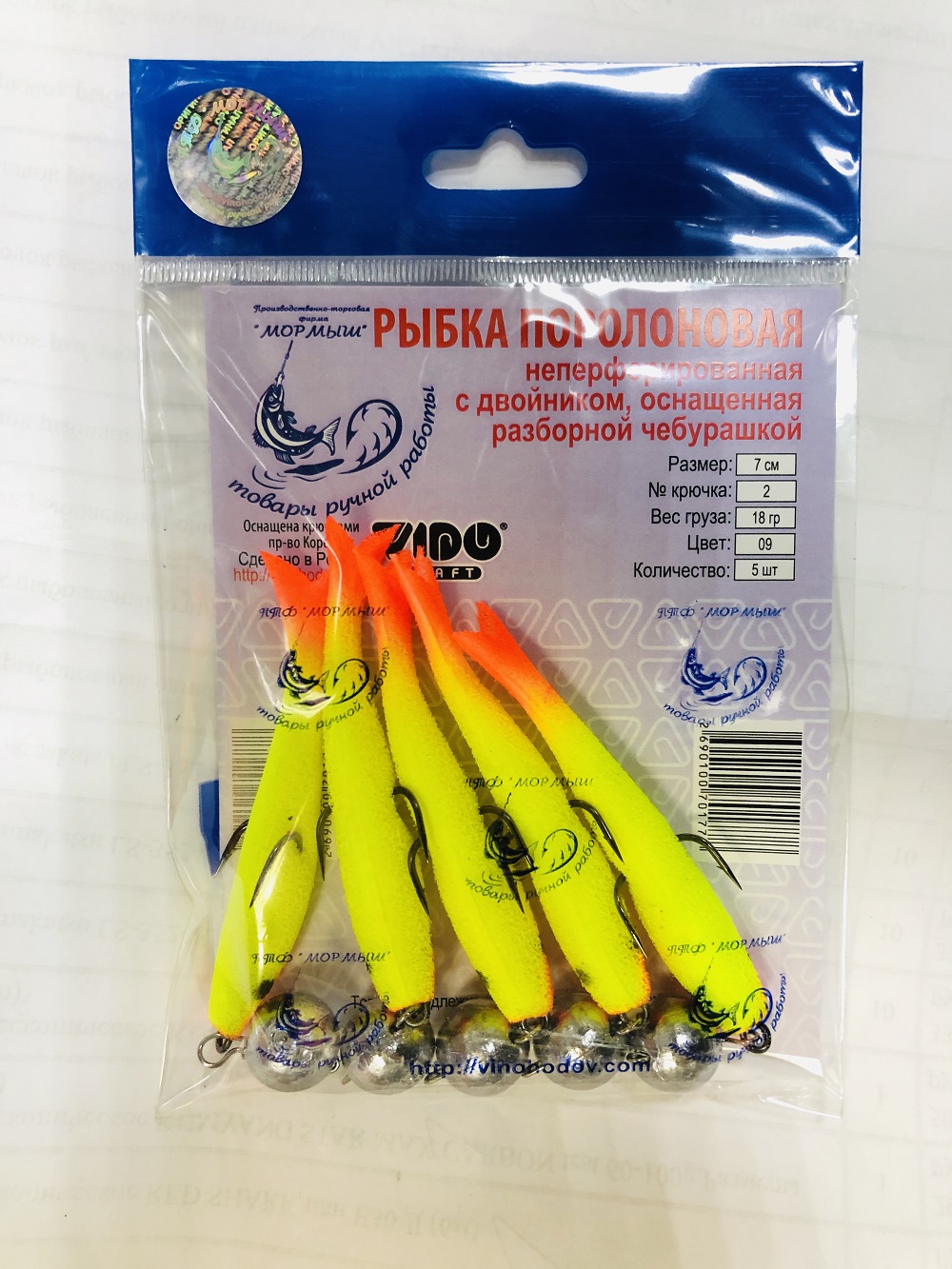 Рыбка поролоновая перфорированная оснащённая двойником с грузом SAIKYO 5 штук.LN