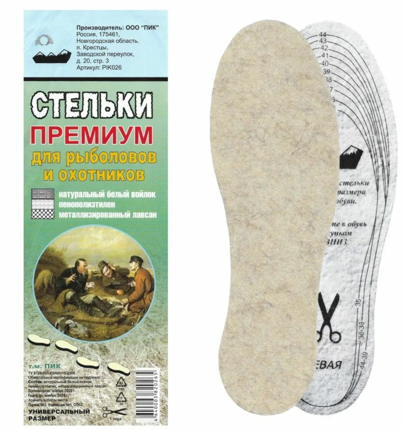 Стельки зимние ПРЕМИУМ натуральный войлок / упаковка 10 пар (Арт. RS1737)
