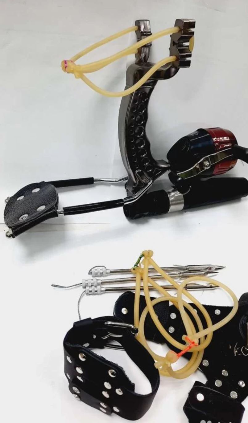 В комплекте с рогаткой идет кронштейн с тактическим кольцом для установки на планку Weaver, механическая катушка для рыбалки (Bowfishing) с леской, три гарпуна и специальная защитная перчатка на руку. Этот комплект позволяют использовать рогатку для ловли рыбы.Рукоятка эргономичной формы с заметным уклоном вперед гарантирует удобный хват и прицеливание. С торца рукоятки располагается короткая планка типа Weaver длиной 3,5 см, что позволяет установить на нее любое тактическое оборудование, например: фонарик, лазерный целеуказатель и всевозможные кронштейны для прочих аксессуаров.