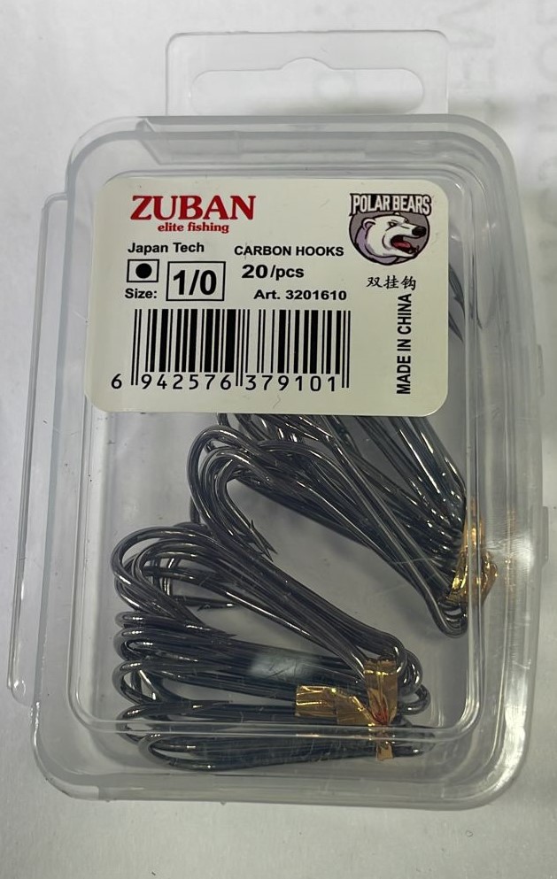 Крючки ZUBAN CARBON HOOKS Elite Fishing Крючок двойной упаковка 20 штук размер 1/0