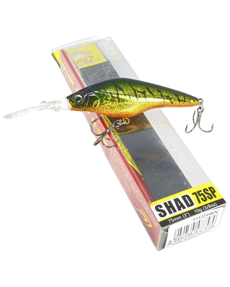 Воблер Columbia Hardcore Shad-75SP - данный воблер имеет длину 75мм и вес 10гр, заглубление 0,1 - 2,5м. Представляет собой типичный шэд, оснащается крупной лопастью, которая служит отбойником при контакте с подводным препятствием и обеспечивает быстрое погружение в рабочий горизонт. Корпус выполнен с реалистичными деталями, благодаря которым приманка становится более схожа с живой рыбкой. Воблер оснащается системой дальнего заброса. Лопасть снабжена монтажной петелькой. В серии представлены вариации с различными окрасками.