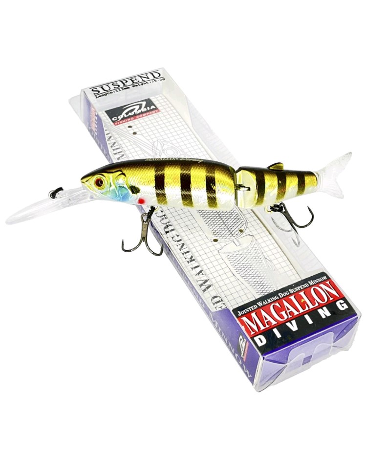 Воблер Columbia Magallon - данный воблер имеет длину 113мм и вес 15,2гр, заглубление 1 - 1,5м. Представляет собой состовного малька с реалистичным хвостиком выполненным из силикона, оснащается двумя качественными тройниками. Внутри корпуса установлена шумовая камера. Лопасть снабжена монтажной петелькой. В серии представлены вариации с различной окраской, а так-же вариации с боками покрашеннымив в разные цвета.
