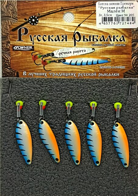 Блесна зимняя премиум Русская Рыбалка упаковка 5 штук 3гр 3.5см (Арт-ТРК)