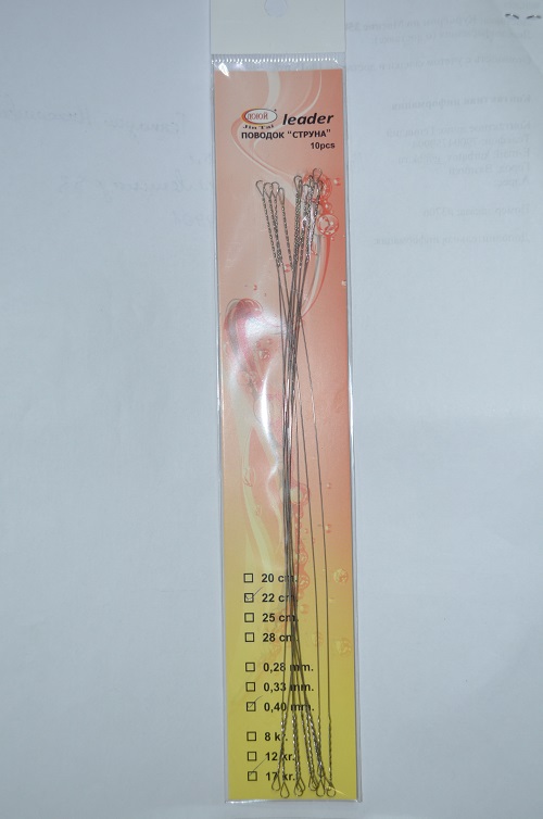 Поводки Струна LEADER ДОЮЙ 22см-0,40mm до 17кг 10 штук. (Арт. RS26530) / минимальный заказ 5 штук