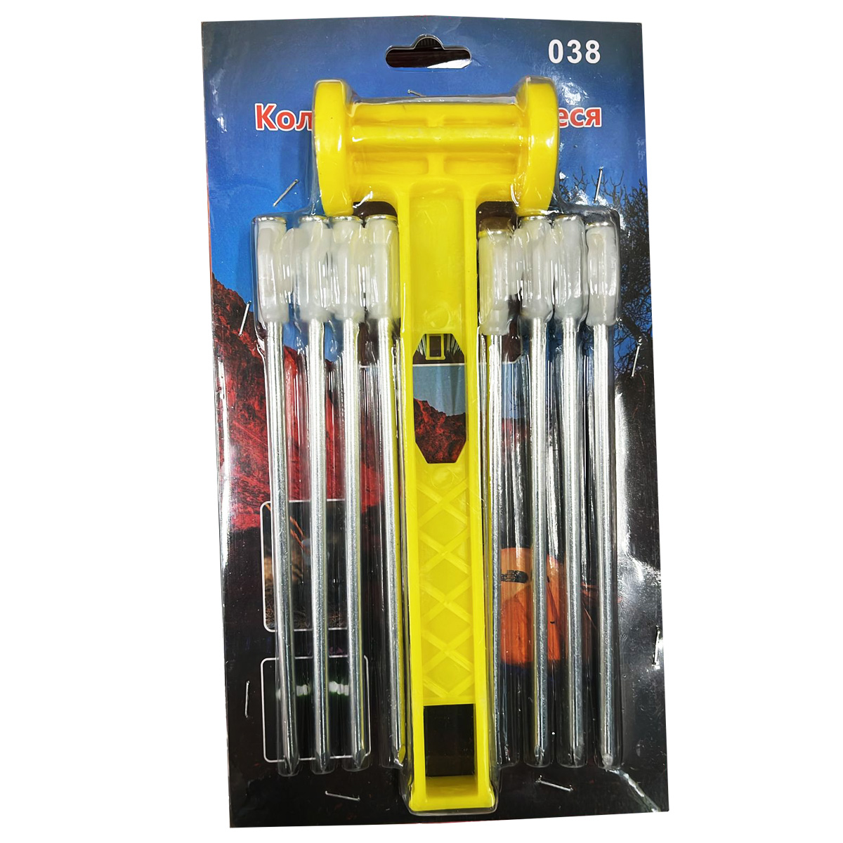 Комплект светящиеся колышки для палаток, 8 штук + молоток. (Арт-KM-038)