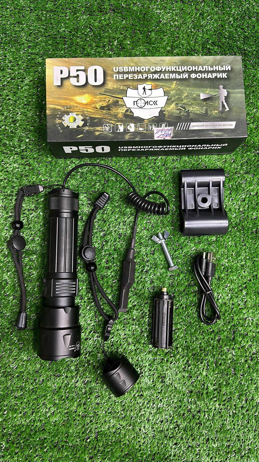 Фонарь подствольный, тактический, многофункциональный, перезаряжаемый. (Арт P50 №010) (Арт-FR101)