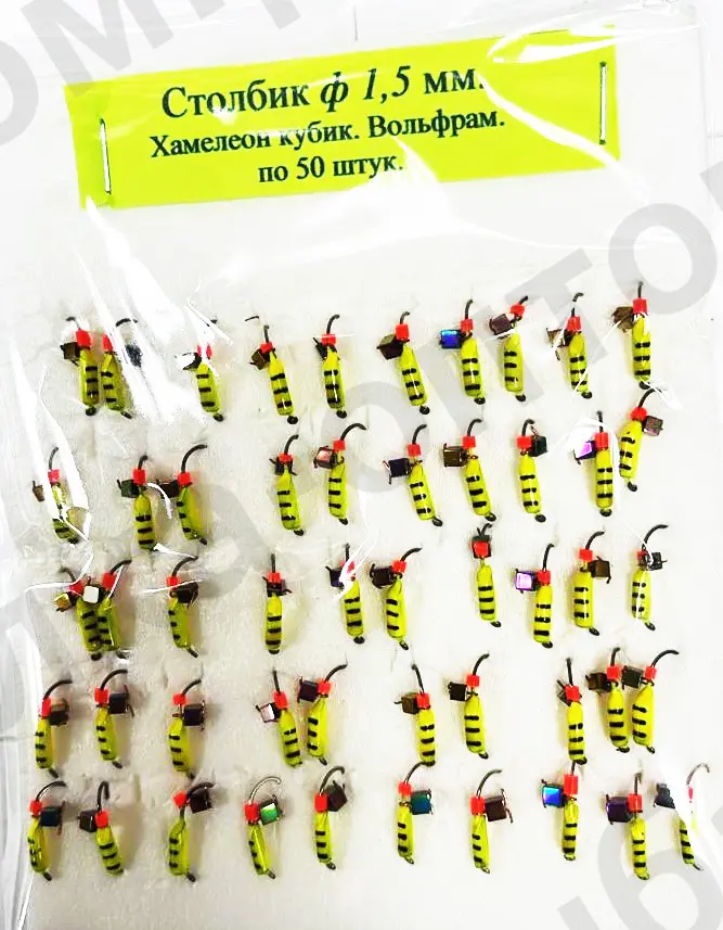 Мормышка Столбик ф 1.5мм, хамелеон кубик, вольфрам, упаковка 50 штук. (Арт-LN/37)