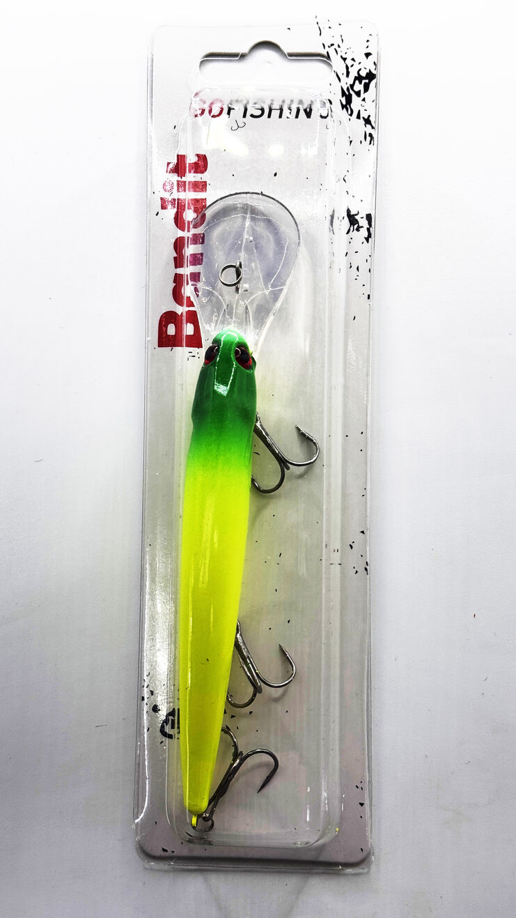 Воблер BANDIT CO FISHING 122мм, 22гр, погружение до 5-7м. Этот глубоководный кренк, безусловно, заслуживает внимания спиннингистов, охотящихся за трофейной рыбой. Его массивная конструкция и агрессивная игра делают его приманкой, способной провоцировать на атаку даже самых пассивных хищников. Оптимален для ловли в закоряженных местах и на участках с неровным дном, где другие приманки могут легко зацепиться.