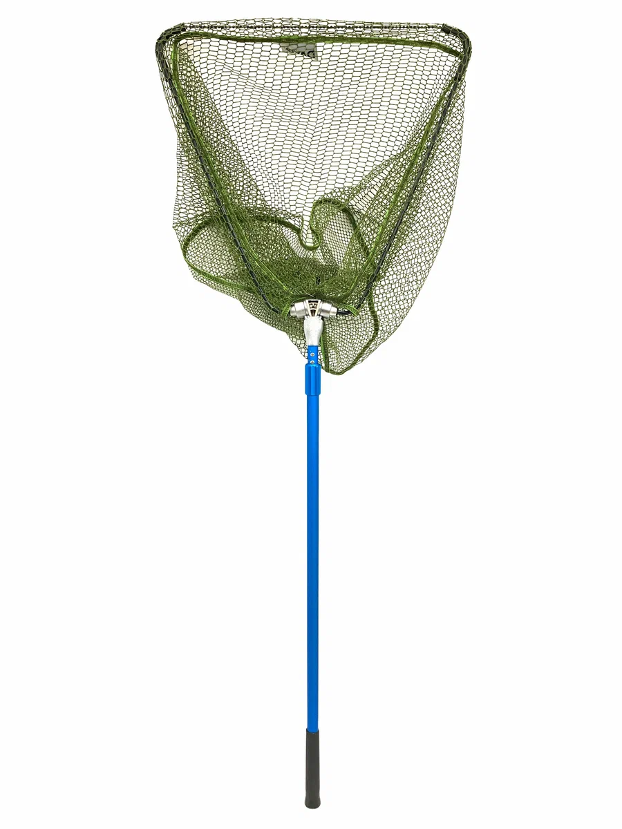 811113 Подсак карповый, треугольный, складной, прорезиненая зеленая сетчатая ткань, синяя ручка