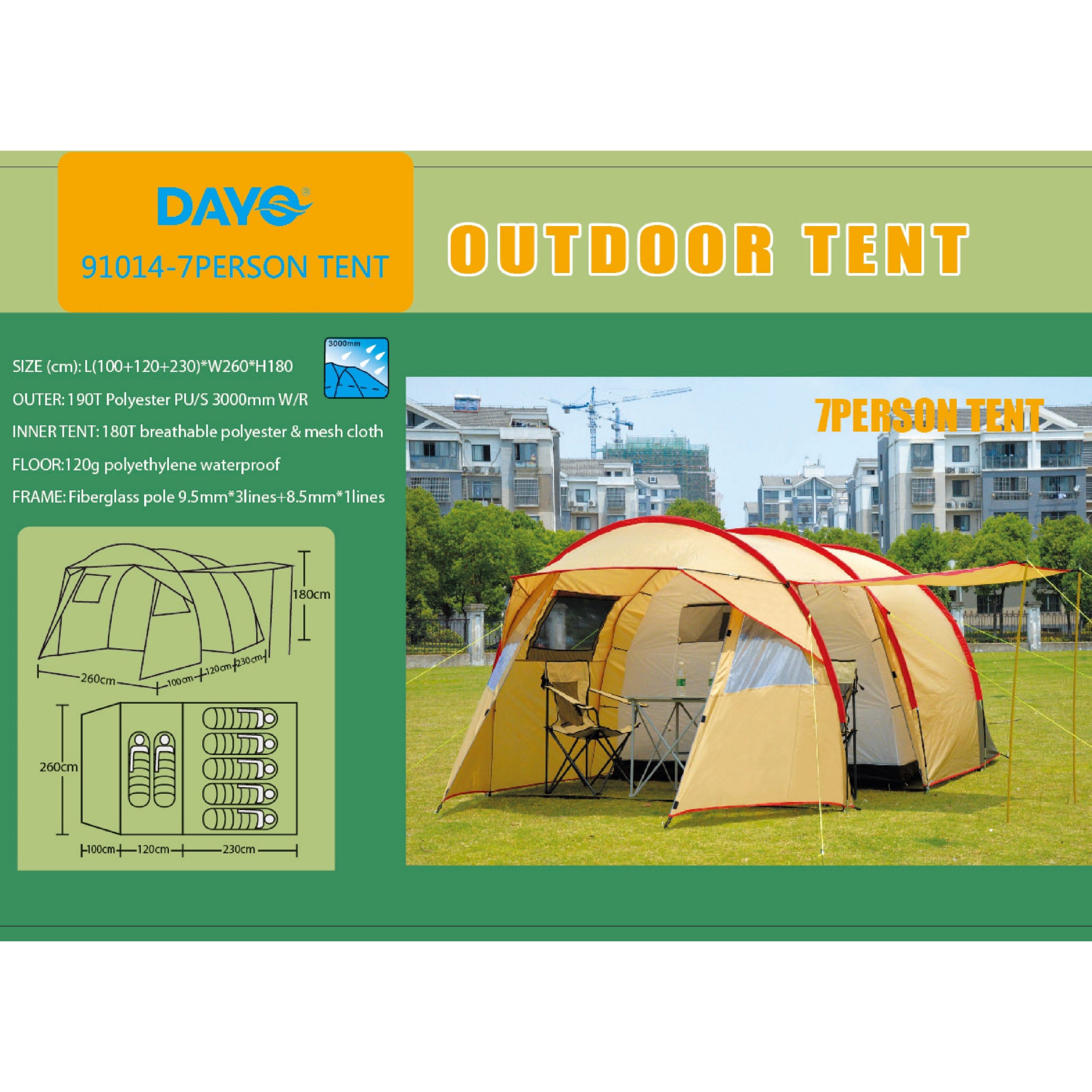 91014-7 Палатка семиместная, (100+120+230)х260х180 см, материал 190Т, пропитка PU