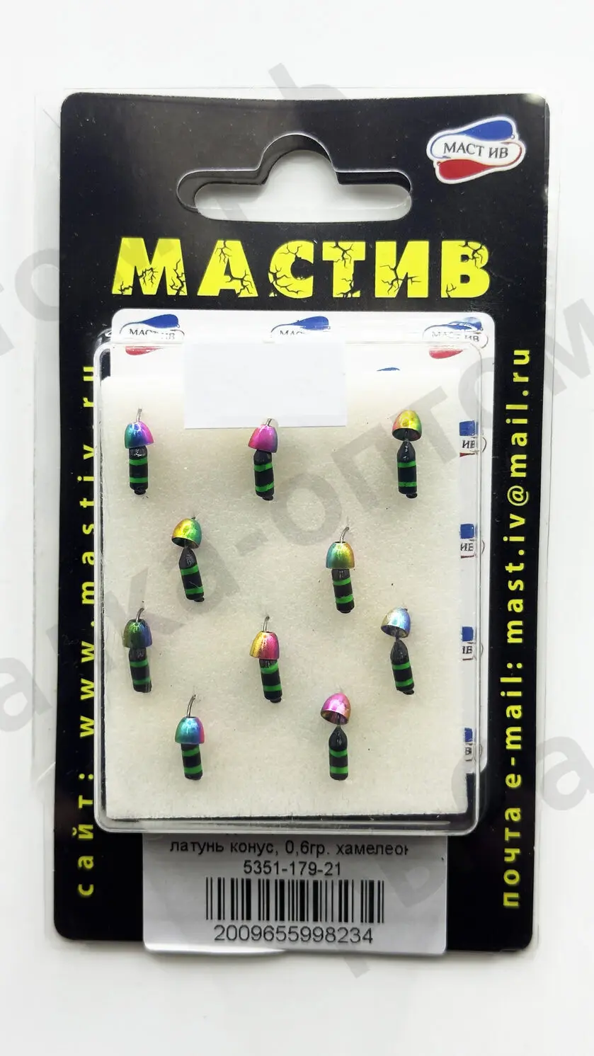 Мормышка МАСТИВ вольфрам, латунь конус 0.6гр, хамелион, мин заказ 10шт/уп. (Арт-LN.5351-179-21)