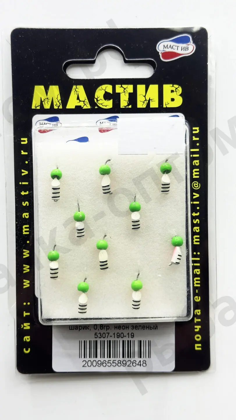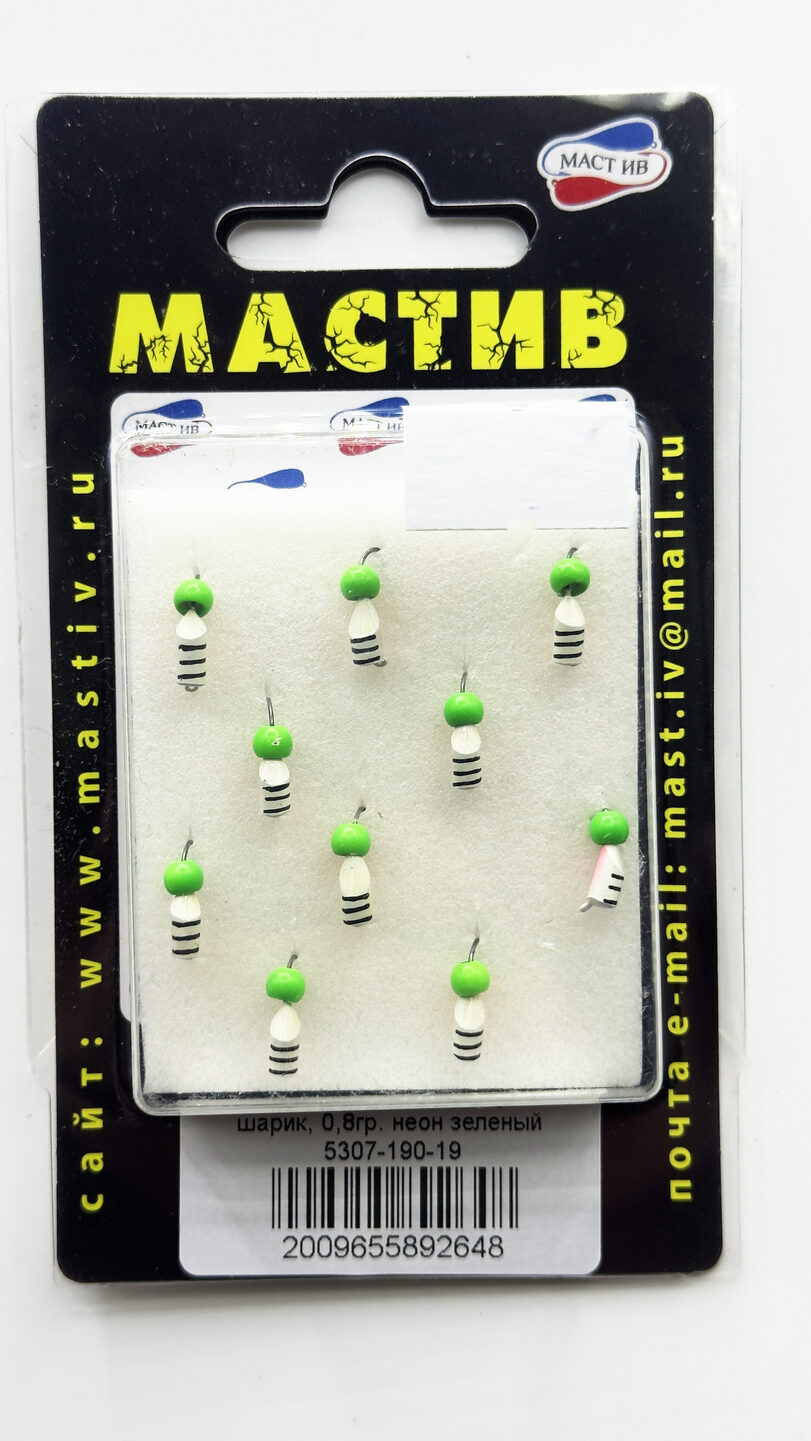 Мормышка МАСТИВ вольфрам, шарик неон 0.8гр, зелёный, мин заказ 10шт/уп. (Арт-LN.5307-190-19)