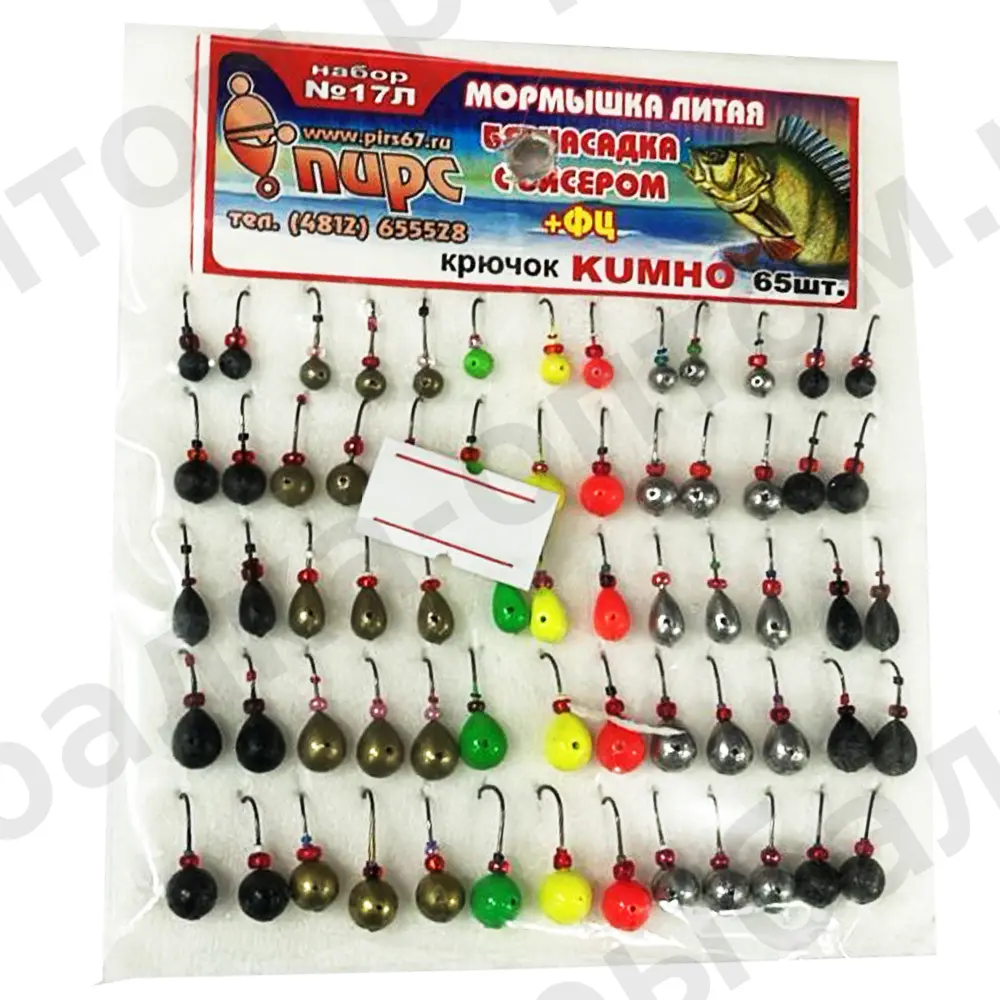 Трийник ПИРС №17Л, литая, безнасадочная с бисером, крючок kumho, упаковка 65шт. (Арт-M126/10)