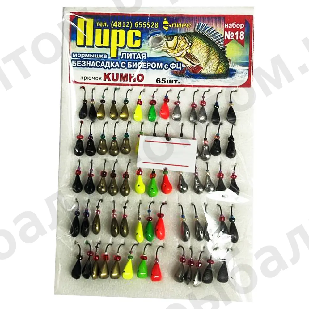 Мормышка ПИРС №18, литая, безнасадочная с бисером, крючок kumho, упаковка 65шт. (Арт-M126/12)