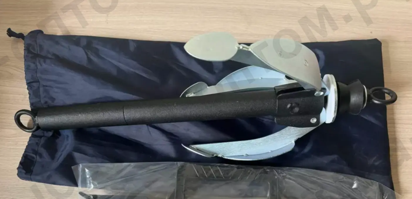 Якорь складной – разборный – предназначен для удержания надувных лодок на месте стоянки. Основные преимущества данного якоря это: Универсальность – возможность уменьшить вес с 5,2кг до 3,5кг, Стоит лишь открутить один элемент якоря. Компактность – возможность складывать лапы якоря, что значительно уменьшает его габариты и обеспечивает безопасность при транспортировке. Увеличенный грунтозацеп на лапах якоря, позволяет более надежно удерживать лодку на месте. Для приведения якоря в рабочее положение необходимо последовательно развести лапы якоря, преодолевая сопротивление фиксирующей пружины, до их полной фиксации