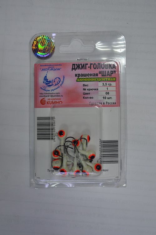 Джиг-головка крашеная Шар на крючках KUMHO 3,5g крючок №1 10 штук.