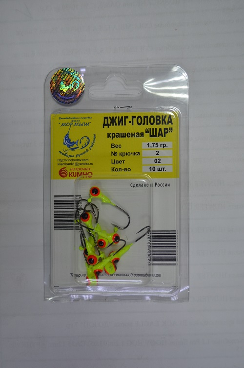 Джиг-головка крашеная Шар на крючках KUMHO 1,75g крючок №2 10 штук.