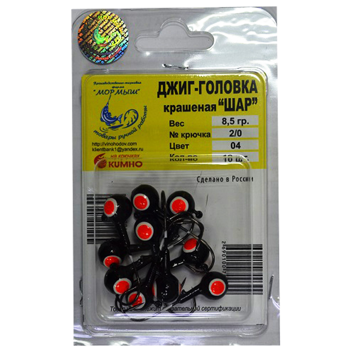 Джиг-головка крашеная Шар на крючках KUMHO 8,5g крючок №2/0 10 штук.