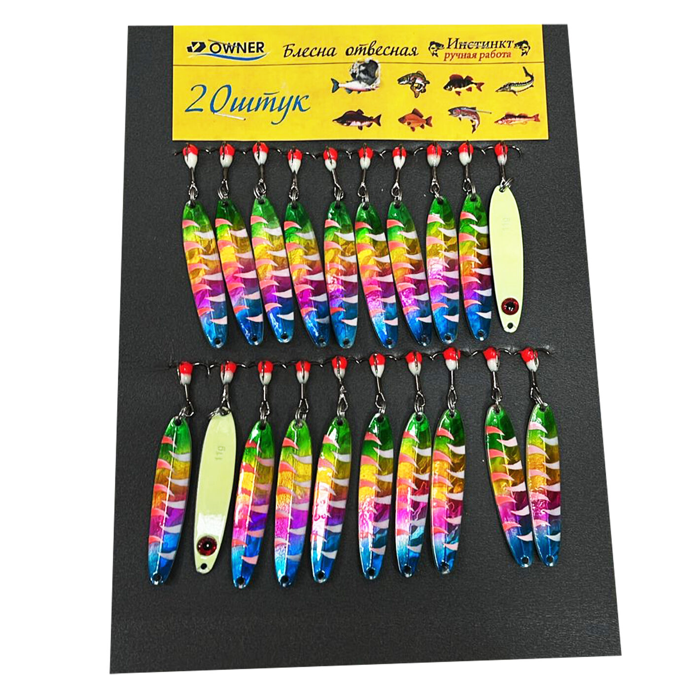 - Комплектация: Блесны поставляются в упаковке по 20 штук, что обеспечивает рыболова запасом приманок на длительный период.