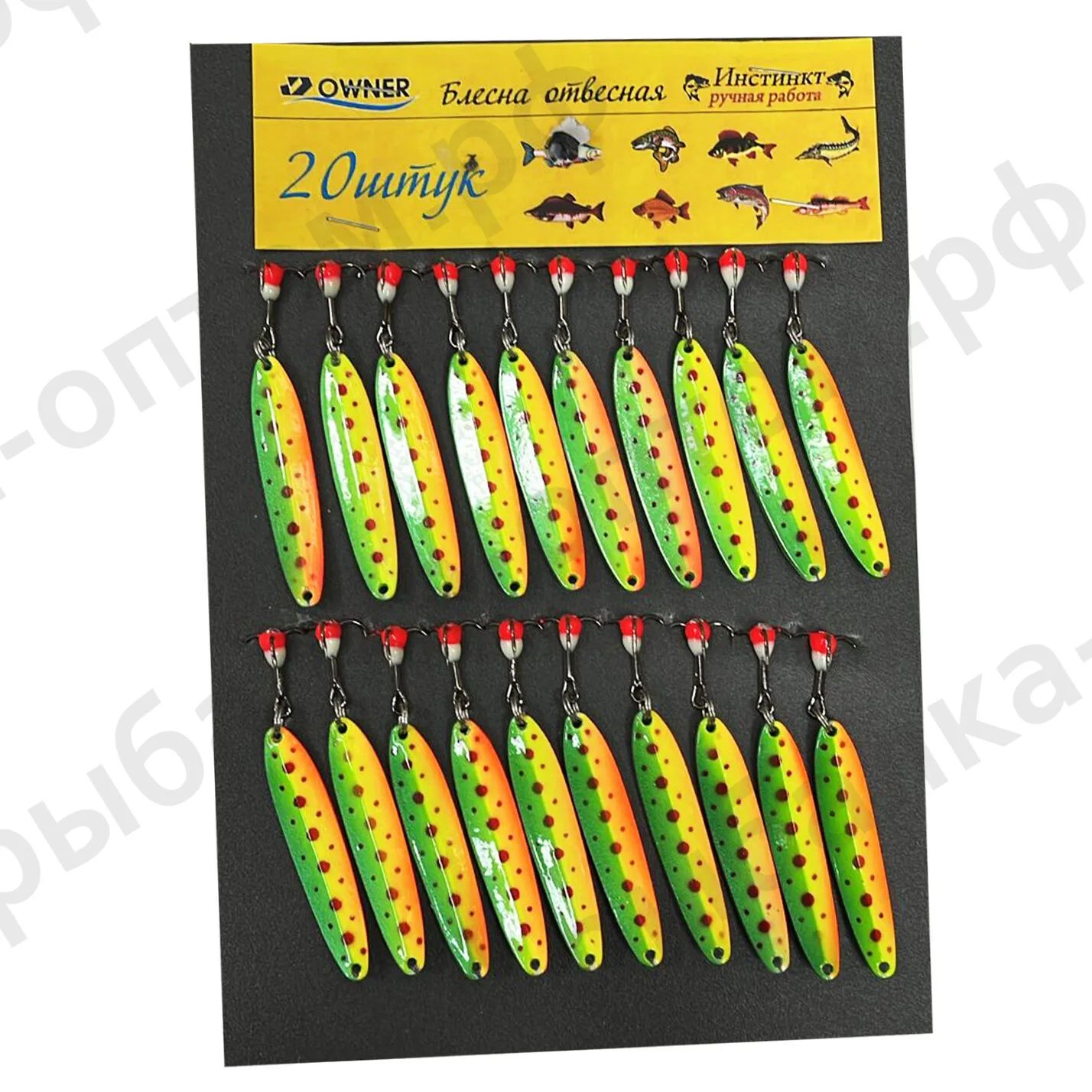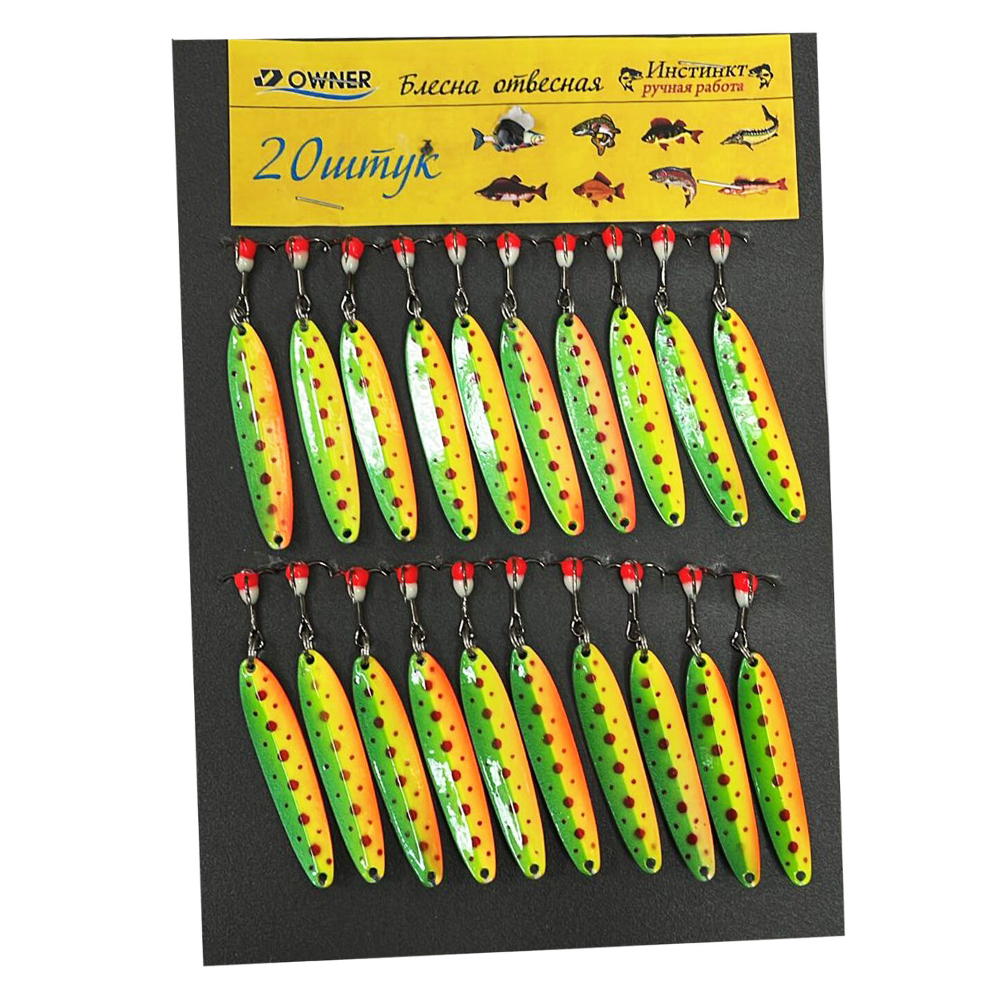 - Комплектация: Блесны поставляются в упаковке по 20 штук, что обеспечивает рыболова запасом приманок на длительный период.