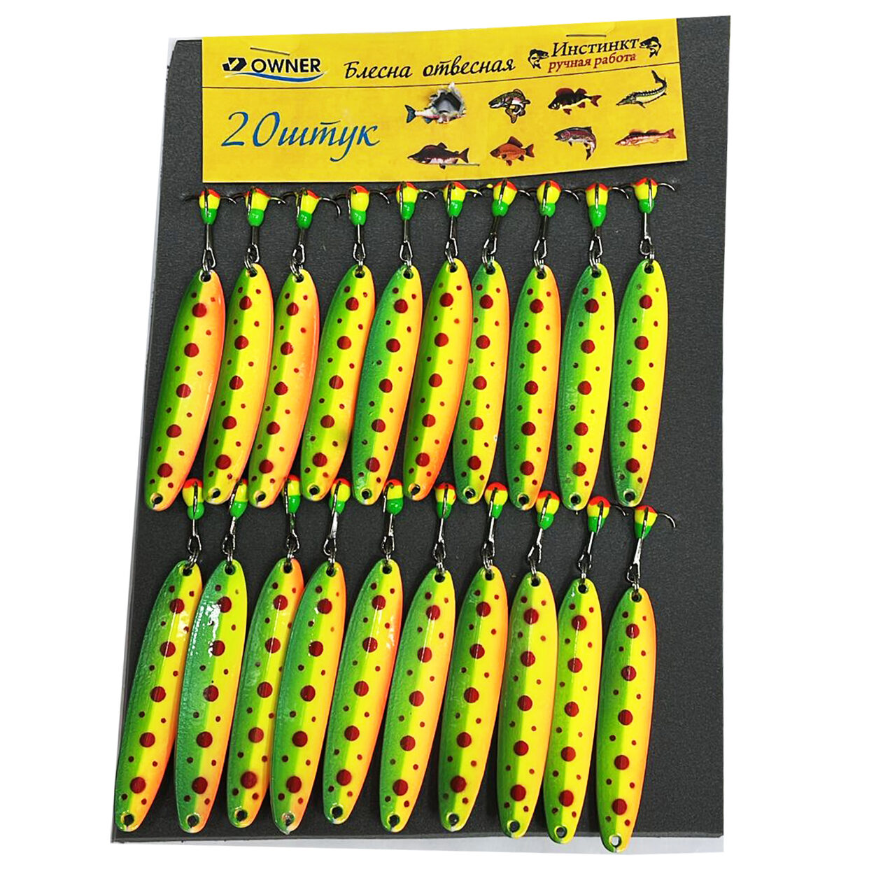 - Комплектация: Блесны поставляются в упаковке по 20 штук, что обеспечивает рыболова запасом приманок на длительный период.
