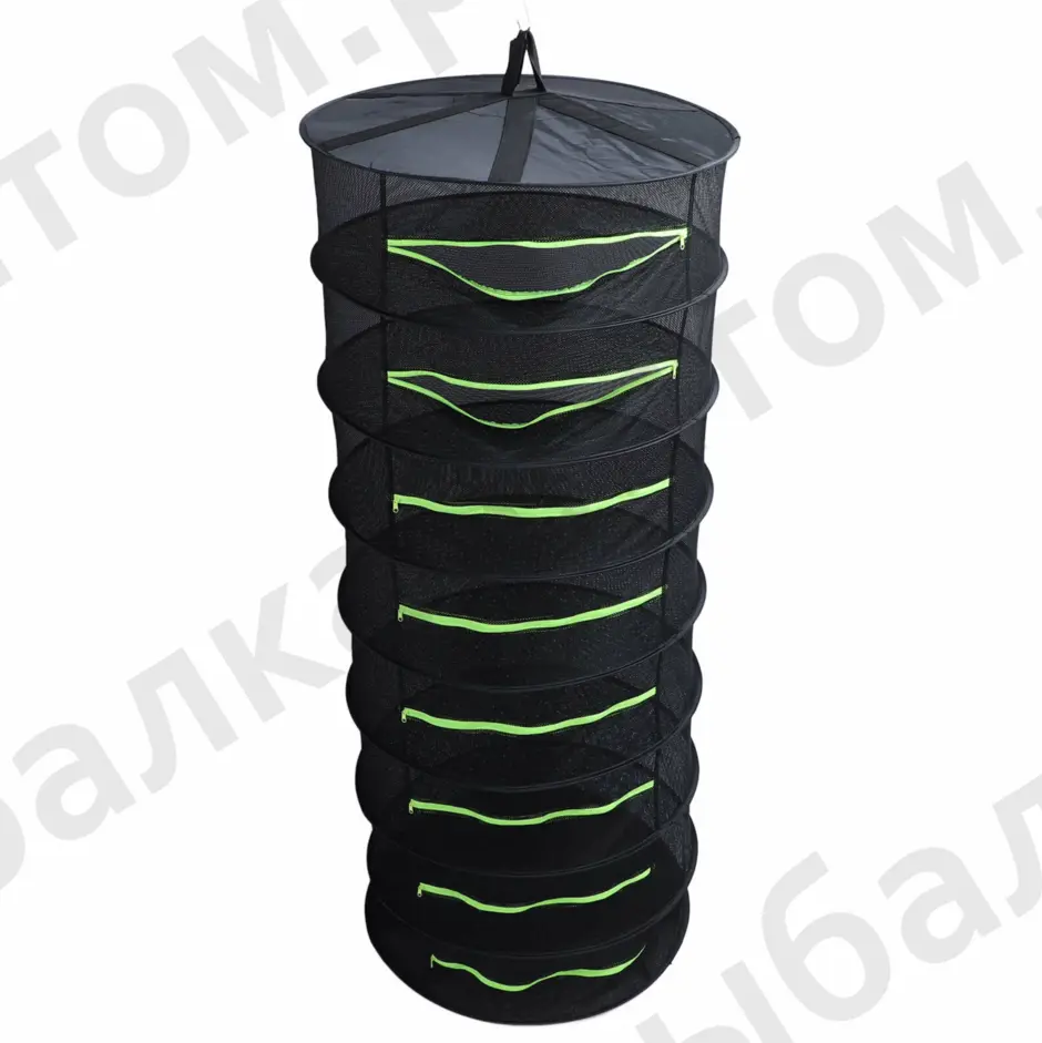Подвесная сетка-сушилка с защитой от насекомых. Раскладка автомат: диаметра из 27 в 60 см. Позволяет сушить: рыбу, мясо, грибы, ягоды, травы, овощи и фрукты. Прочное многослойное плетение препятствует попаданию насекомых, но обеспечивает приток воздуха для равномерного проветривания без переворачивания рыбы. Оснащена двойным дном для полной изоляции от животных, птиц и насекомых. Доступ внутрь сетки оборудован застежкой-молнией. Не требует сборки, раскладывается одним движением. В сложенном состоянии компактна и удобна для хранения и перевозки. Легко моется после использования и быстро сохнет. Швы выполнены хорошо, замок качественный, каркас из металла, сама сетка прочная.