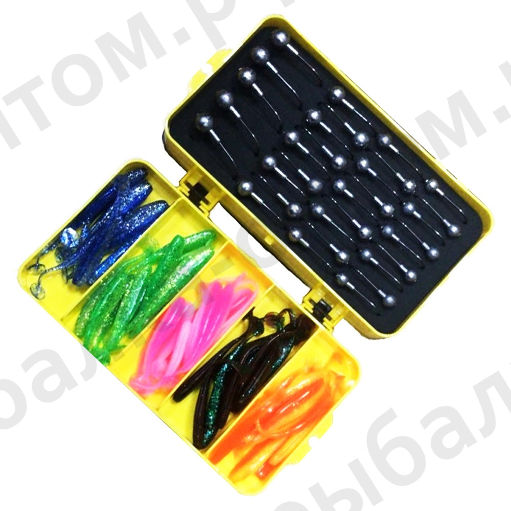 Набор, джиг головки, силиконовые приманки, в пластиковом боксе. (Арт-ОSP)