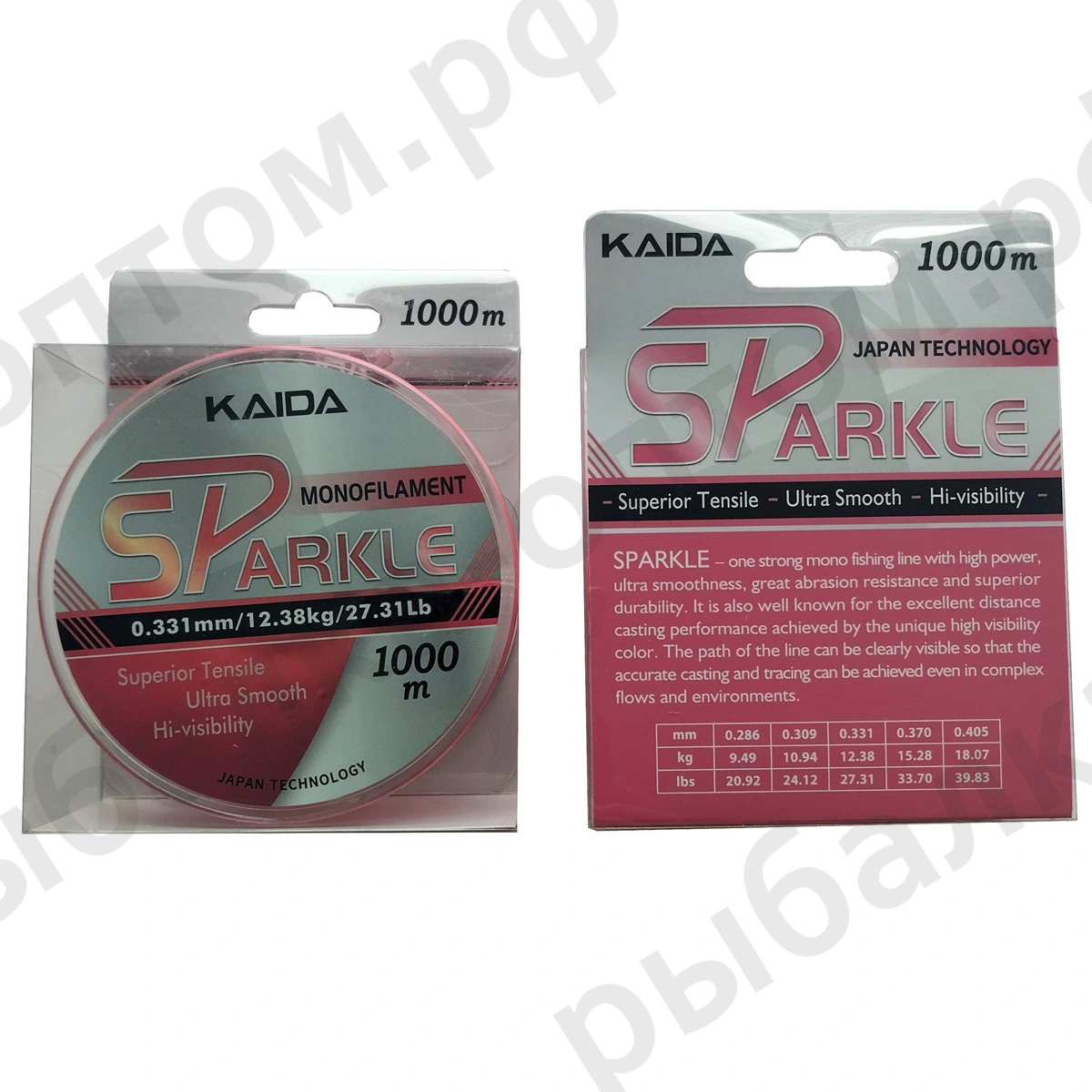 Леска Kaida SPARKLE monofilament, розовая 1000m (Размеры внутри)
