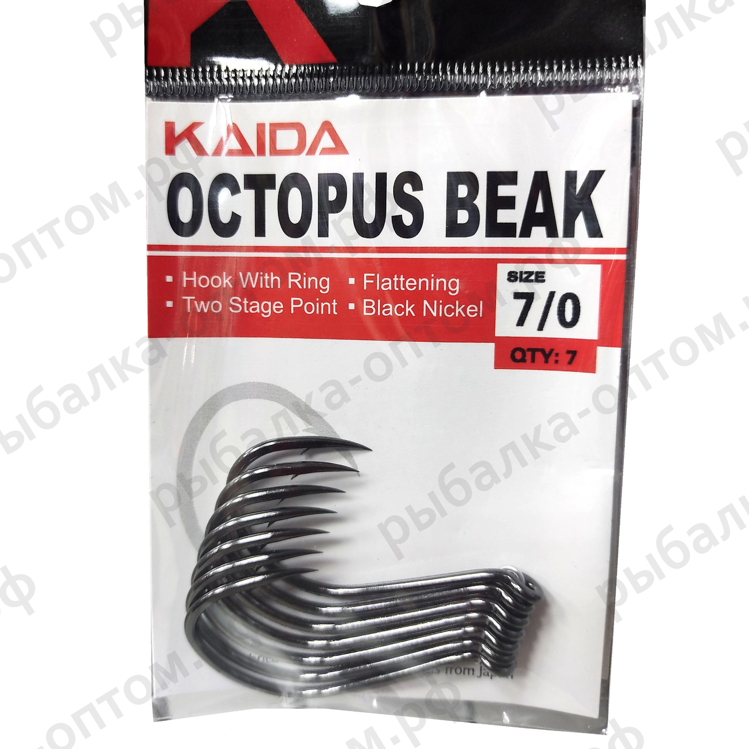 Крючок Kaida OCTOPUS, одинарный, на сома, в упаковке 7 штук (Размеры внутри)