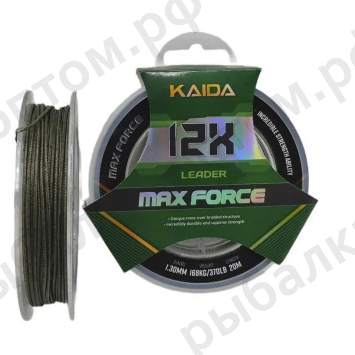 LEADER 12X MAX FORCE Поводковый материал 20м KAIDA (Размеры внутри)