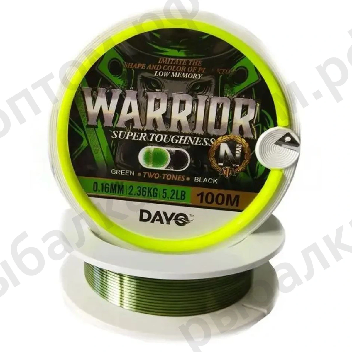 Леска WARRIOR DAYO 100м, чёрно-зелёная (мин. заказ 10 шт) (Размеры внутри)