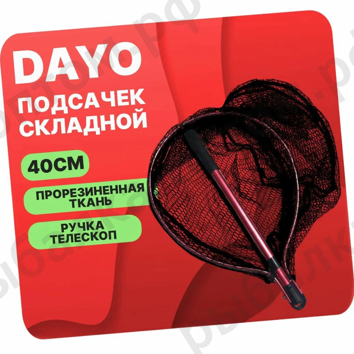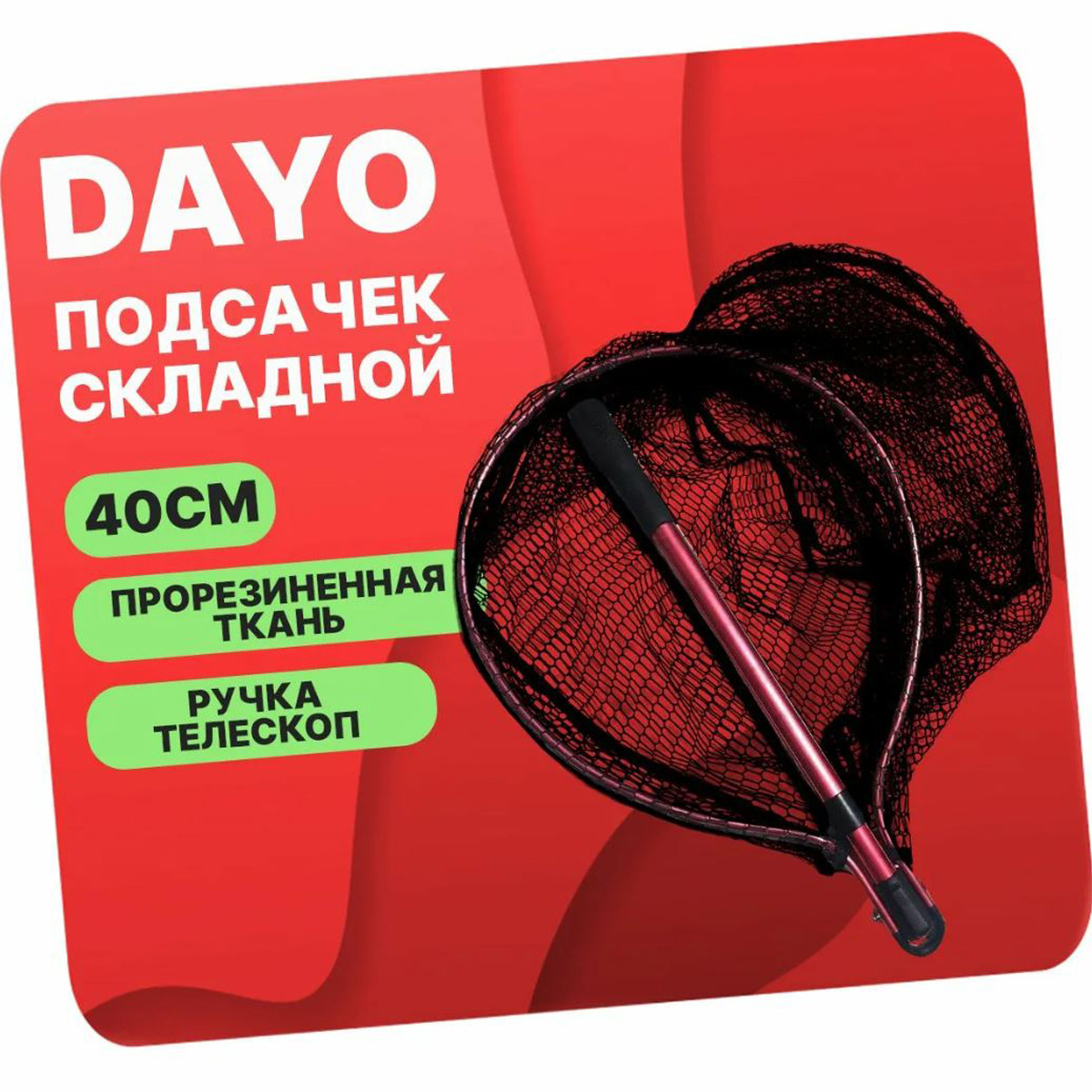 Подсак овальный DAYO прорезиновый, сетчатая ткань, складной (Размеры внутри)