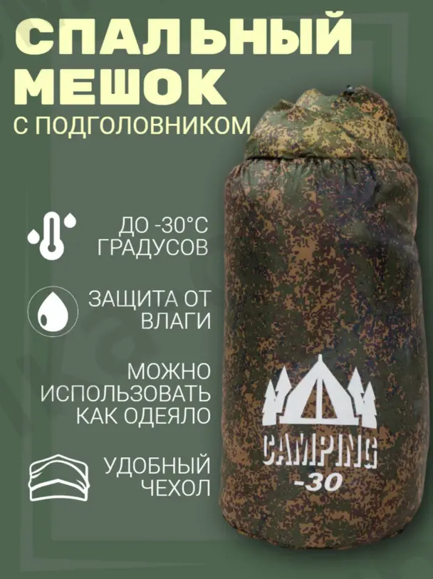 Спальный мешок CAMPING -30c длинна 220 см, ширина 140см, наполнитель синтепон. (Арт-RS19)